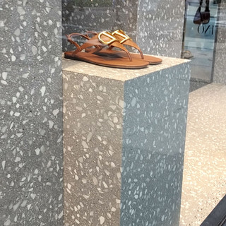 Terrazzo is on trend - the Valentino store, Newbury street / Boston loction is embracing it with what appears to be some kind of printed film. Looks chic, but also (understandably) non-committal. A new take on gray neutral that's been going strong for so long.